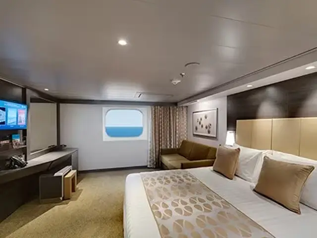 Superficie aproximada de 12 m², ojo de buey con vista al mar Sillón Cuarto de baño con ducha, rincón de belleza con secador de pelo. Cómoda cama doble o dos camas individuales (bajo petición) TV interactiva, aire acondicionado, teléfono, conexión wifi (de pago), caja fuerte y minibar Puede alojar hasta 6 personas.