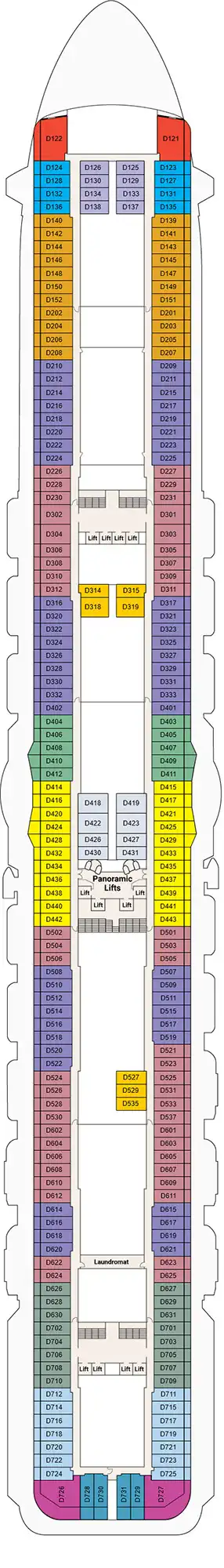Mini-suites (32m² aprox.) con balcón de 7m² aprox amueblado.. Dispone de sala de estar separada con un sofá-cama para una tercera persona. Algunas suites tienen una cama extraíble para acomodar a un cuarto pasajero. Baño privado con bañera-ducha combinada. on secador de pelo, 2 camas individuales convertibles a cama de matrimonio tamaño queen (excepto en algunas cabinas), sábanas de algodón egipcio, 2 televisores de pantalla plana, nevera, armario y caja de seguridad.