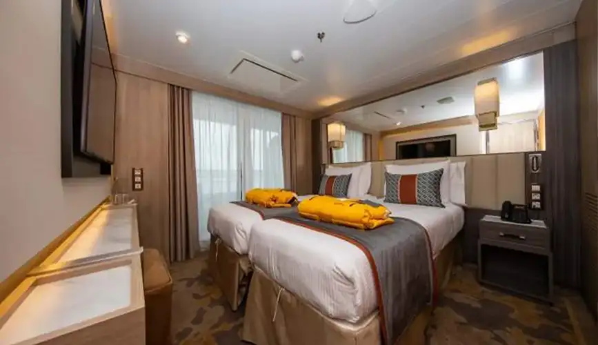 Desde la clásica cabina interior hasta la más elegante de la suites a bordo. Descubre la cabina más adecuada para ti a bordo de World Explorer.