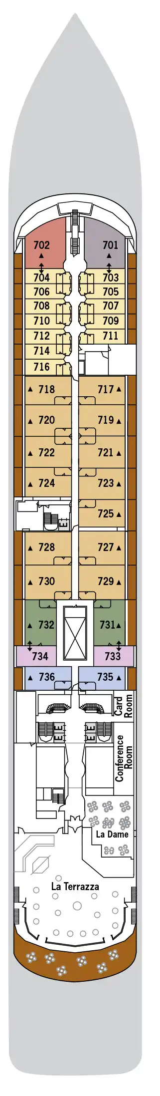Elegante y sofisticado con veranda più grandi, ottima per scattare foto e osservare gli uccelli. Situata a metà nave, questa suite è la perfezione nel design e nella vita confortevole. Un'enorme cabina armadio, un bellissimo bagno in marmo e un'ampia zona giorno completano il quadro. Silver Suites può ospitare tre persone.